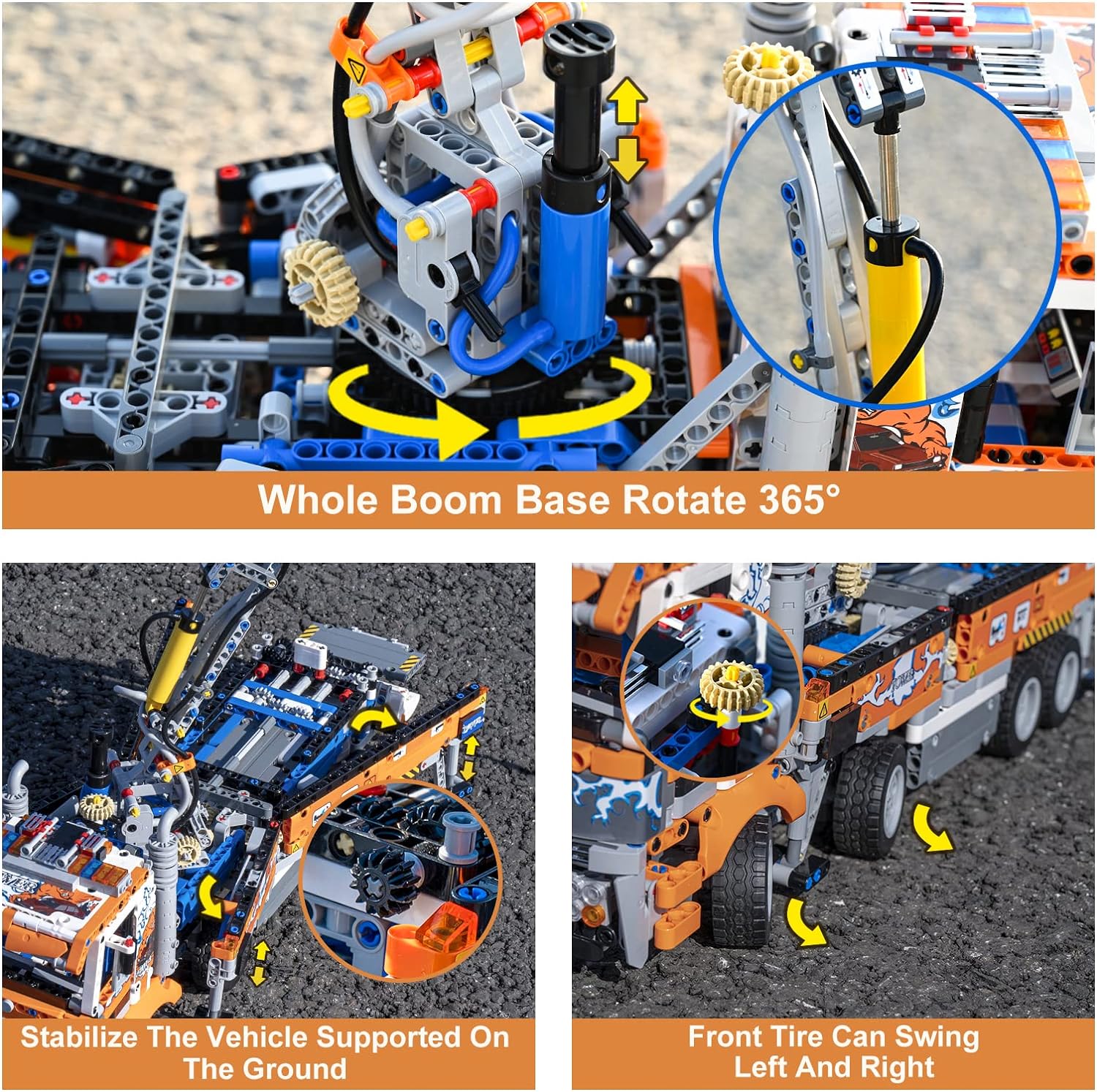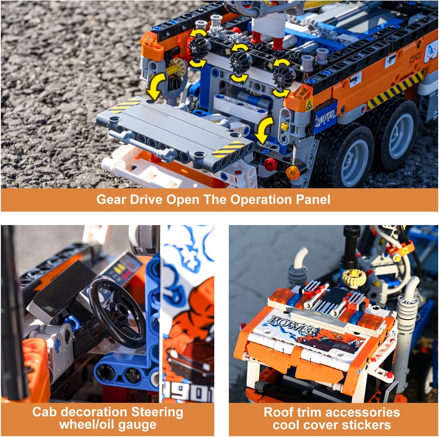 - Techniek Sleepwagen kraanwagen Klemblokken - De afmetingen van het model: 54,5 cm lang, 12,5 cm breed en 21 cm hoog. Engineering Modelkits worden grondig getest om ervoor te zorgen dat elke kit voldoet aan de hoogste wereldwijde veiligheidsnormen.