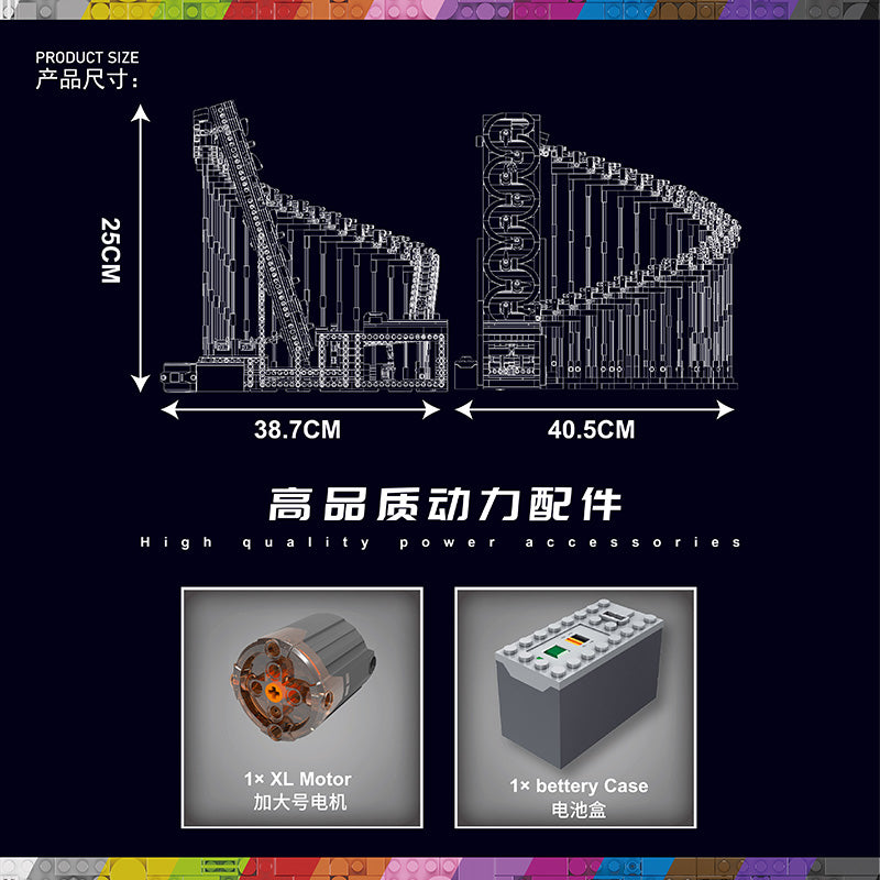 Met de meegeleverde afstandsbediening heb je de controle over de knikkerbaan en kun je genieten van fascinerende knikkerloopbanen en melodieën. Of je nu een liefhebber bent van muziek of een ervaren modelbouwer, de Mould King 26011 harp knikkerbaan biedt eindeloos plezier voor alle leeftijden.