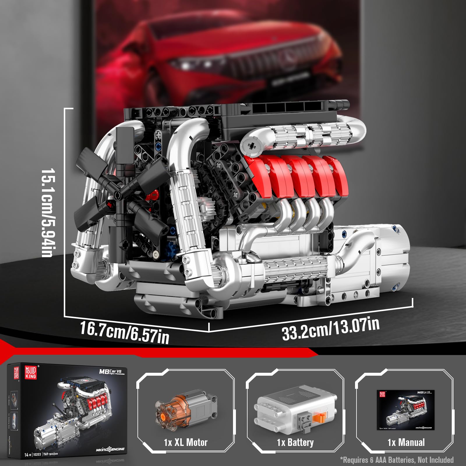 Mould King 10203 V8 Twin Turbo Motorblok BMW M8 – 1169 onderdelen | RC bestuurbaar
