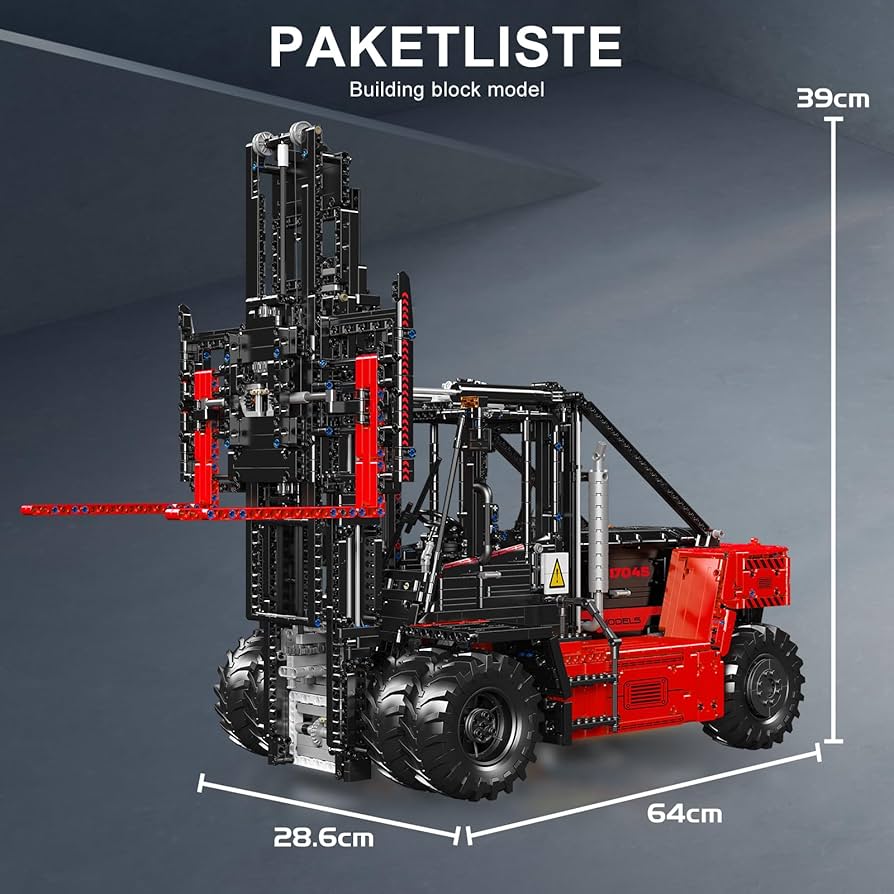 Til je bouwprojecten naar een hoger niveau met de Mould King 17045 Heavy-Duty Heftruck! Deze indrukwekkende bouwset bestaat uit 4579 onderdelen en laat je een gedetailleerd en functioneel model bouwen van een robuuste heftruck. Dankzij de meegeleverde RC-module kun je de heftruck volledig op afstand bedienen, inclusief de hef- en rijfuncties.